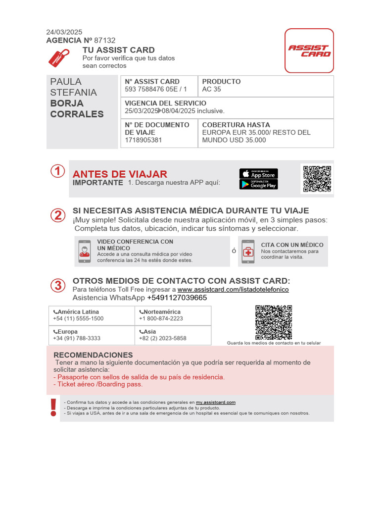 ABAJO. IMPORTANTE: SI NECESITA ASISTENCIA COMUNIQUESE CON ASSIST CARD Y RECUERDE QUE USTED DEBE RECIBIR LA