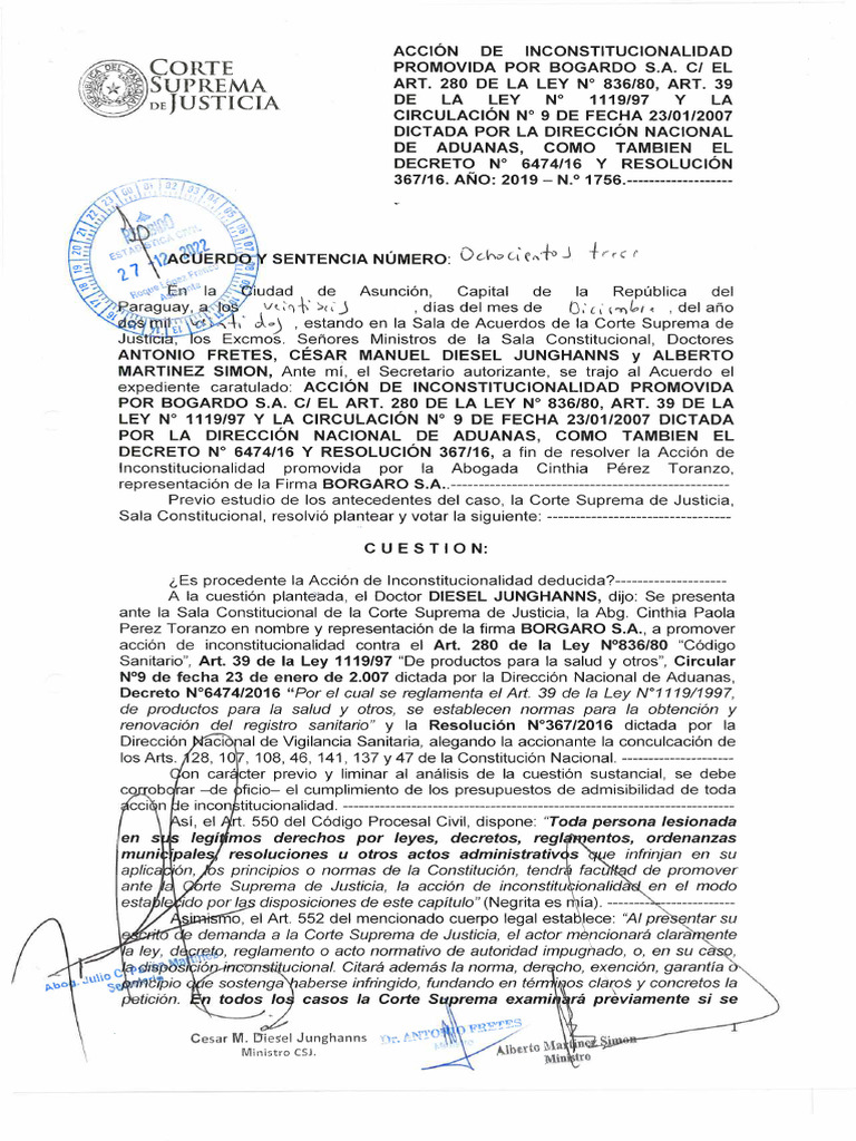 POR BOGARDO S.A. C/ EL ART. 280 DE LA LEY Nº 836/80, ART. 39 DE LA