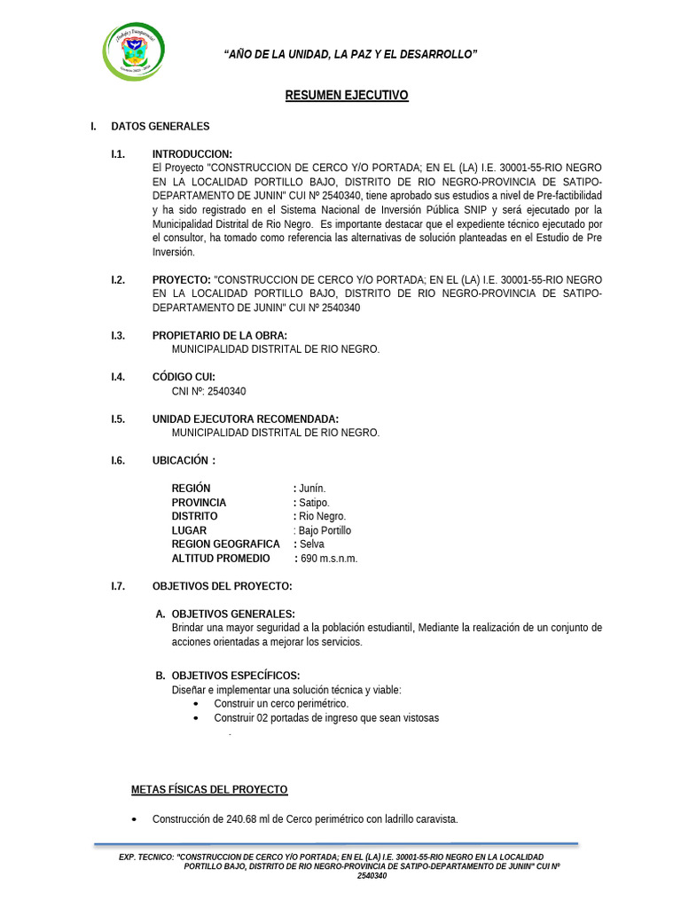 I.2. PROYECTO: "CONSTRUCCION DE CERCO Y/O PORTADA; EN EL (LA) I.E. 30001-55-RIO NEGRO