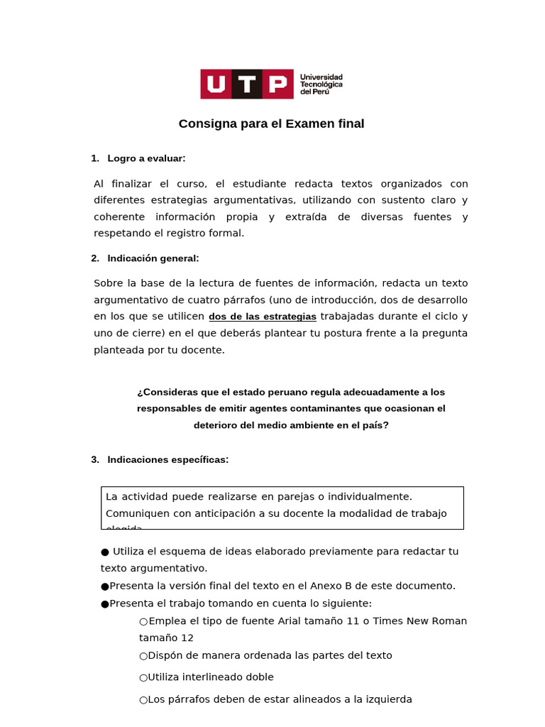 ●Presenta la versión final del texto en el Anexo B de este documento.