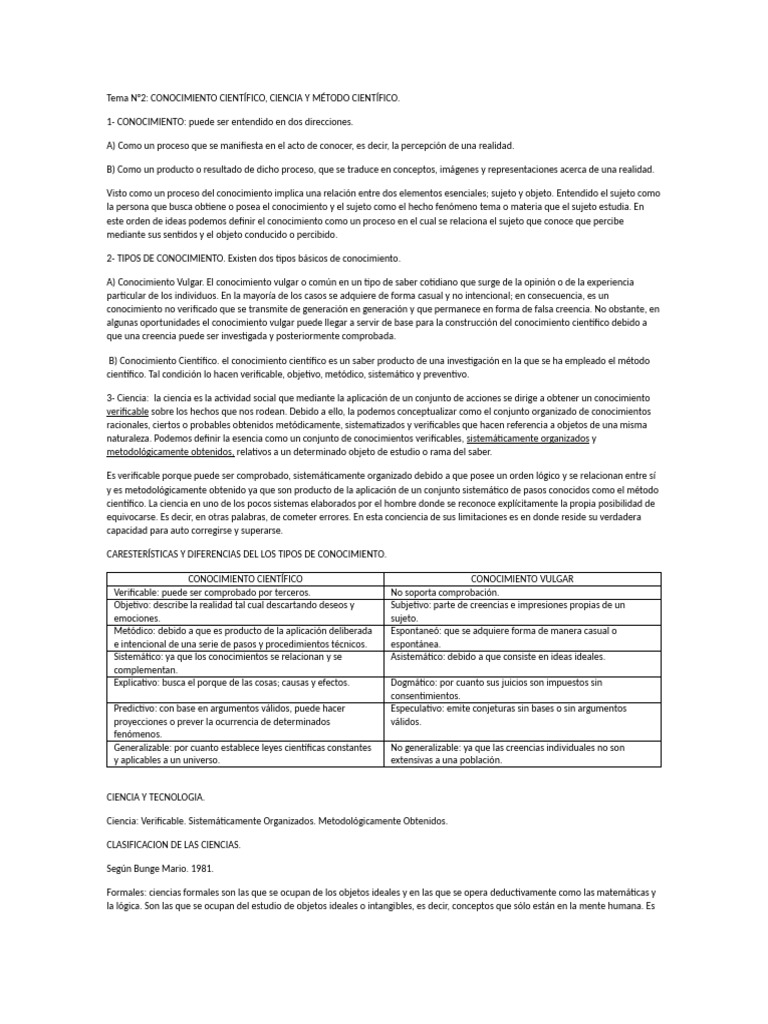 Tema N°2: CONOCIMIENTO CIENTÍFICO, CIENCIA Y MÉTODO CIENTÍFICO.