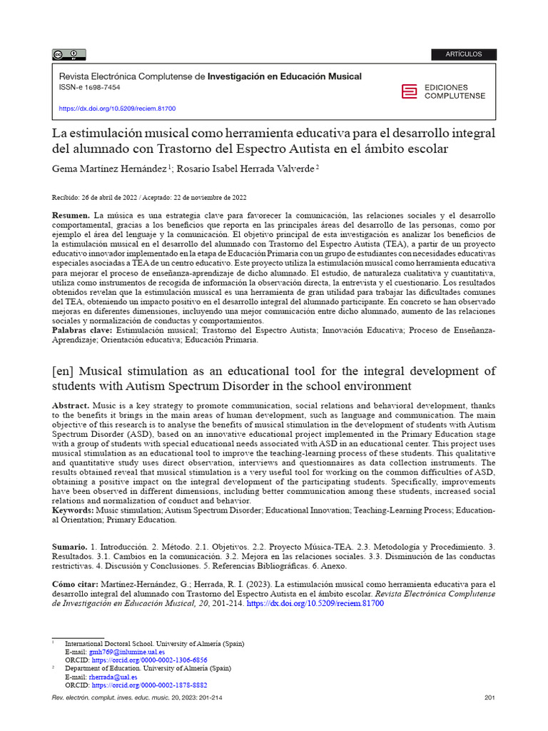 212 Martínez-Hernández, G.; Herrada, R. I. Rev. electrón. complut. inves. educ. music. 20, 2023: 201-214