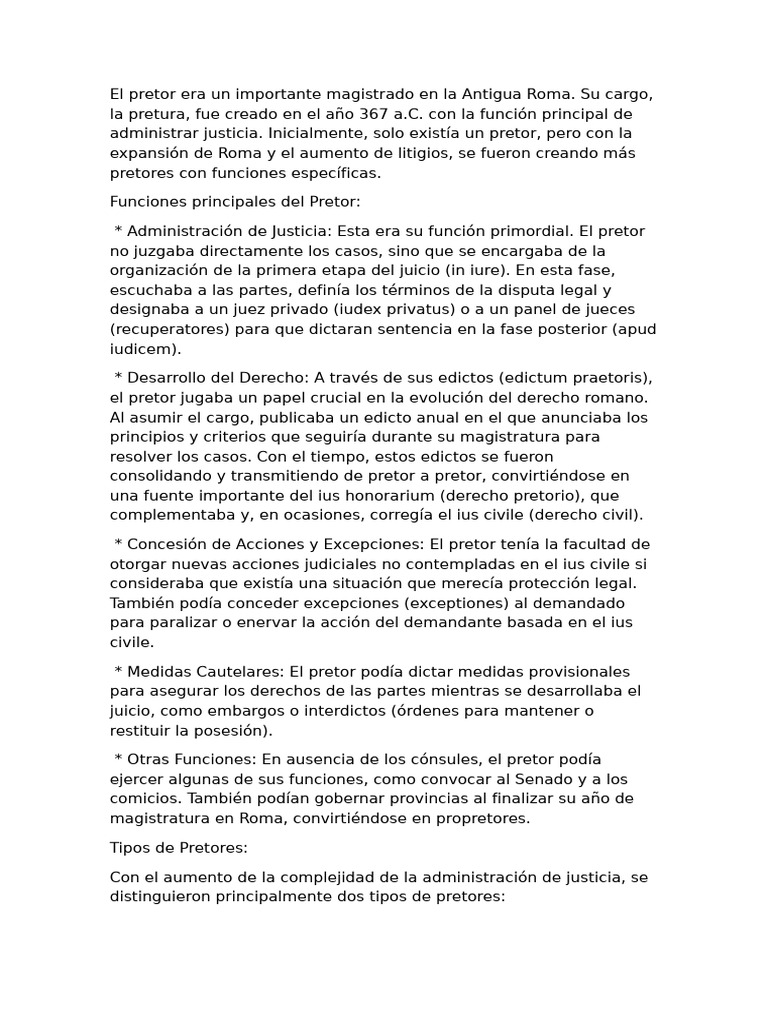 En resumen, el pretor fue una magistratura fundamental en el