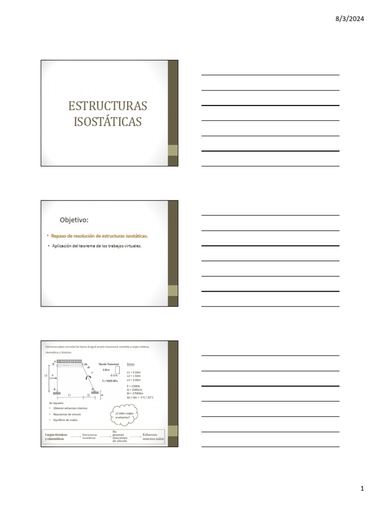 • Repaso de resolución de estructuras isostáticas.