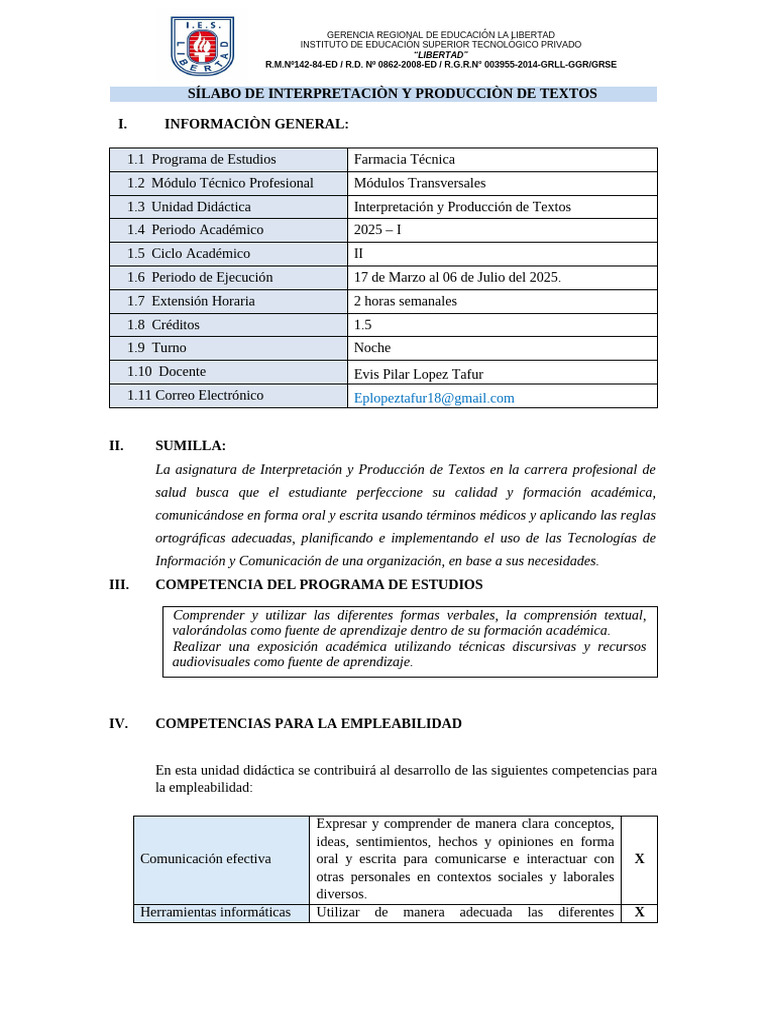 SÍLABO DE INTERPRETACIÒN Y PRODUCCIÒN DE TEXTOS