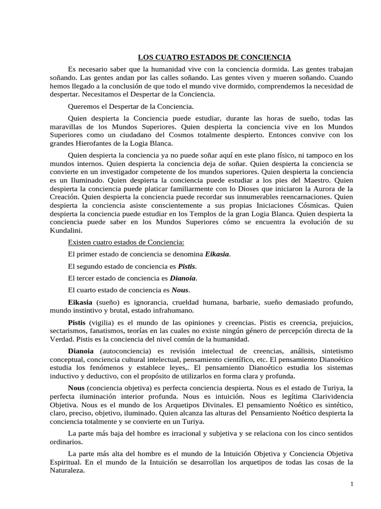 LOS CUATRO ESTADOS DE CONCIENCIA