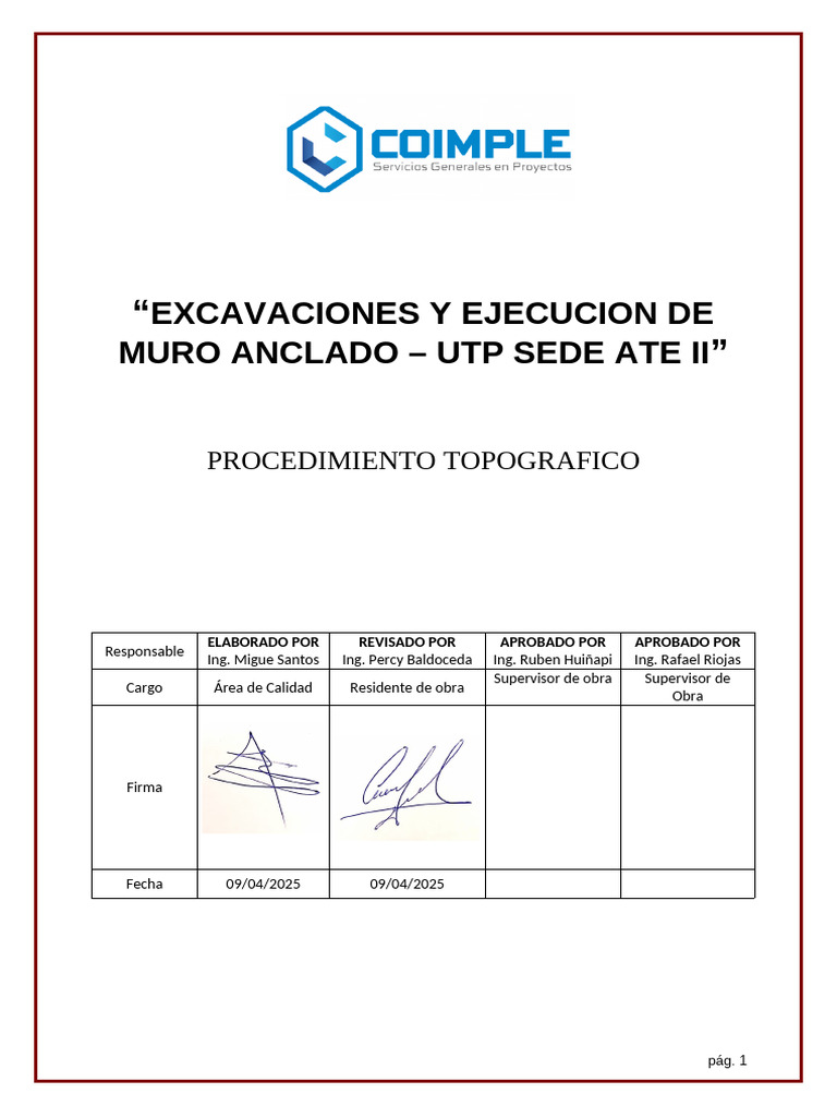 Este instructivo tiene por definir los métodos y acciones aplicables al control topográfico