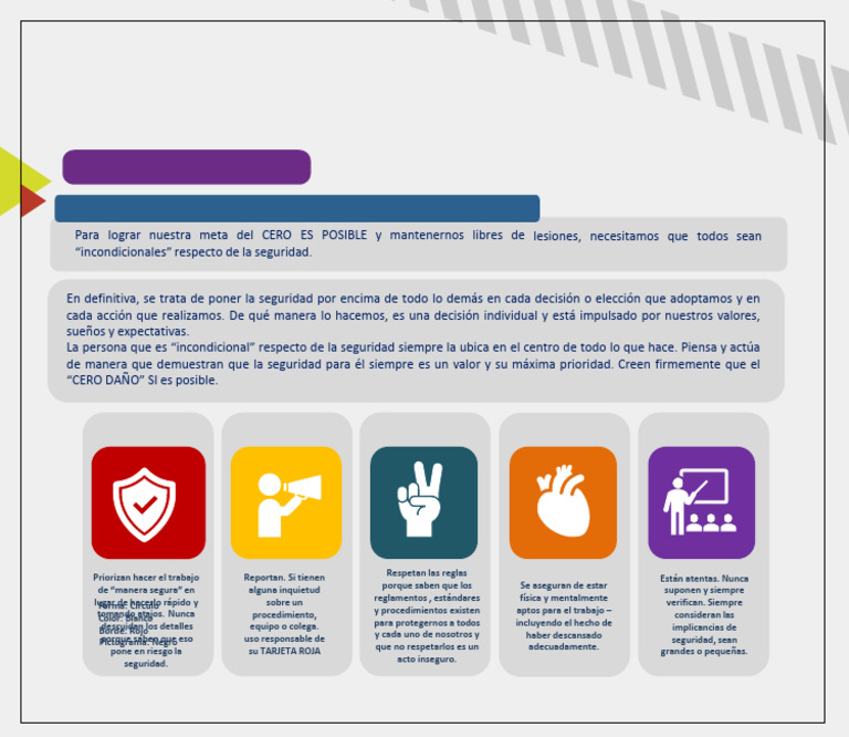 Para lograr nuestra meta del CERO ES POSIBLE y mantenernos libres de lesiones, necesitamos que todos sean