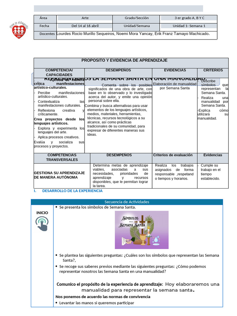 - Percibe manifestaciones base en lo observado y lo investigado Semana Santa.