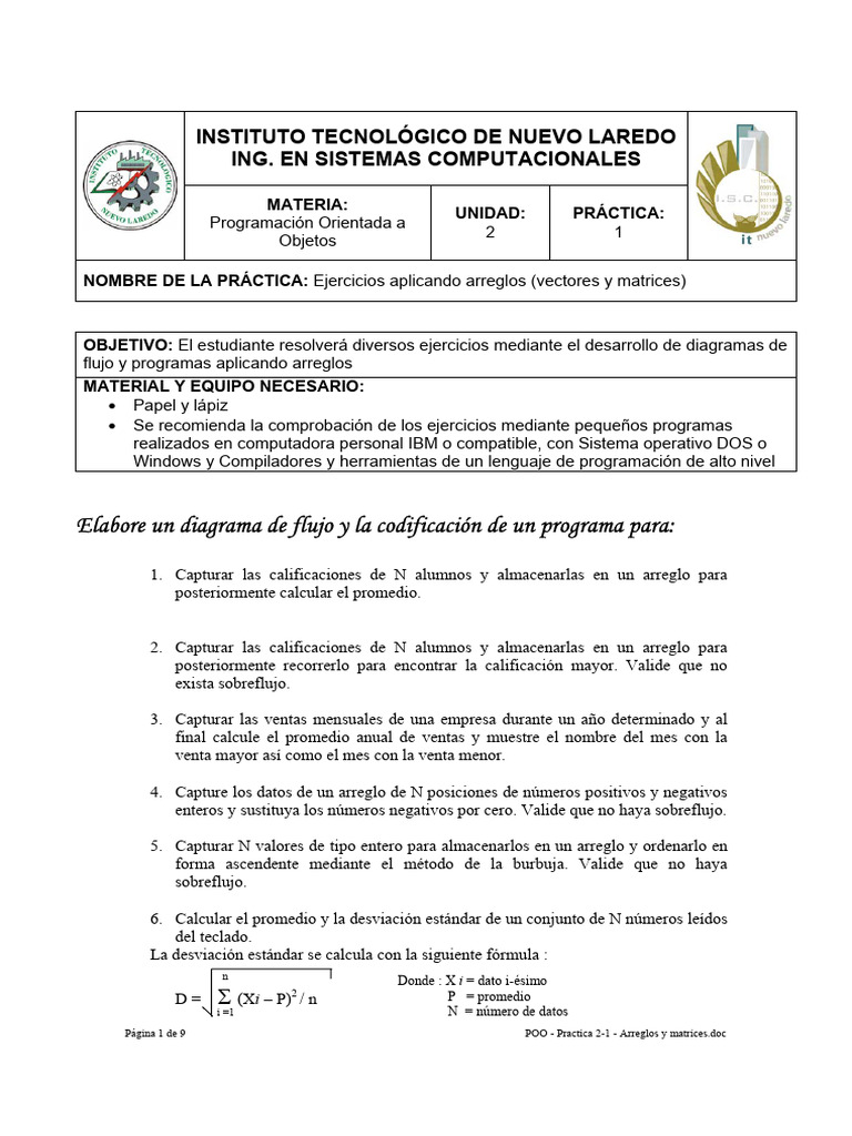 Página 9 de 9 POO - Practica 2-1 - Arreglos y matrices.doc