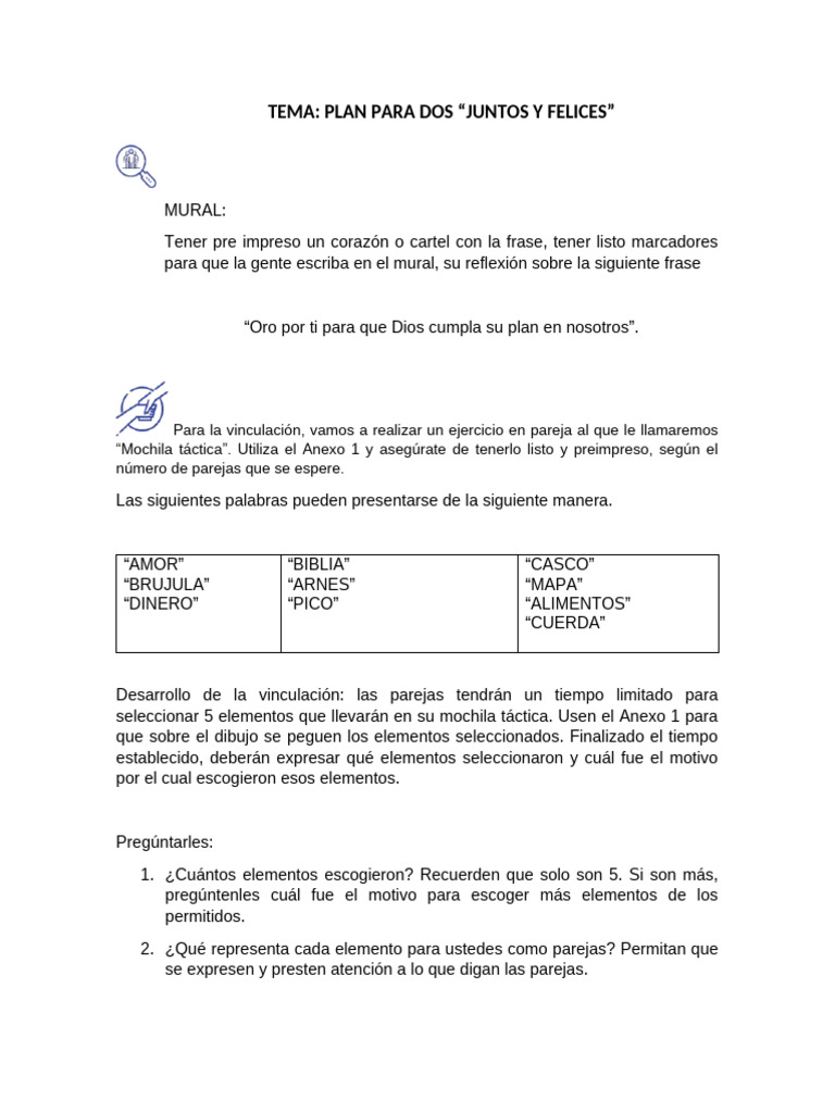 TEMA: PLAN PARA DOS “JUNTOS Y FELICES”