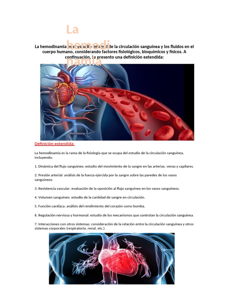La hemodinamia es el estudio integral de la circulación sanguínea y los fluidos en el