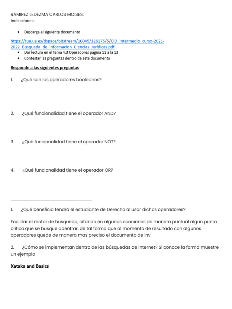 1. ¿Qué beneficio tendrá el estudiante de Derecho al usar dichos operadores?