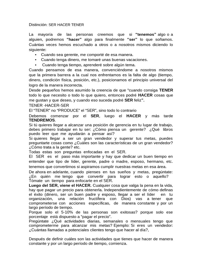 Te invito a invertir la ecuación del TENER - HACER -SER por la de SER -