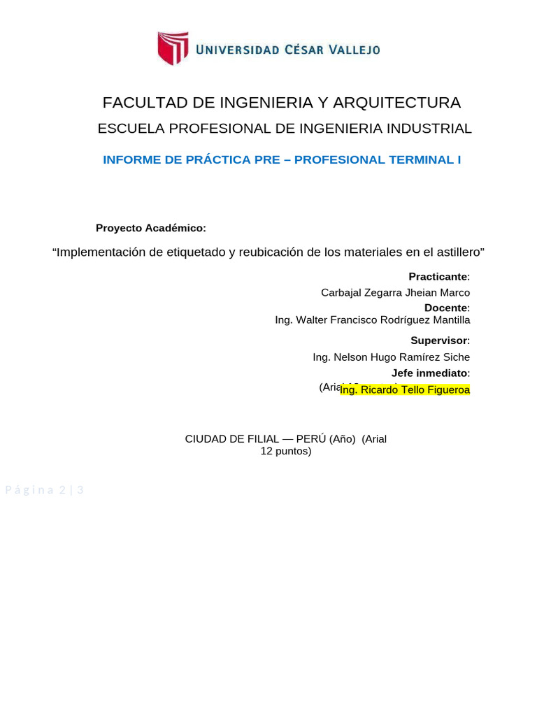 ● Apellidos y nombres del practicante, docente, supervisor y jefe inmediato