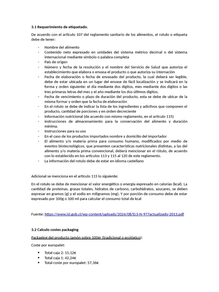 3.2 Calculo costes packaging