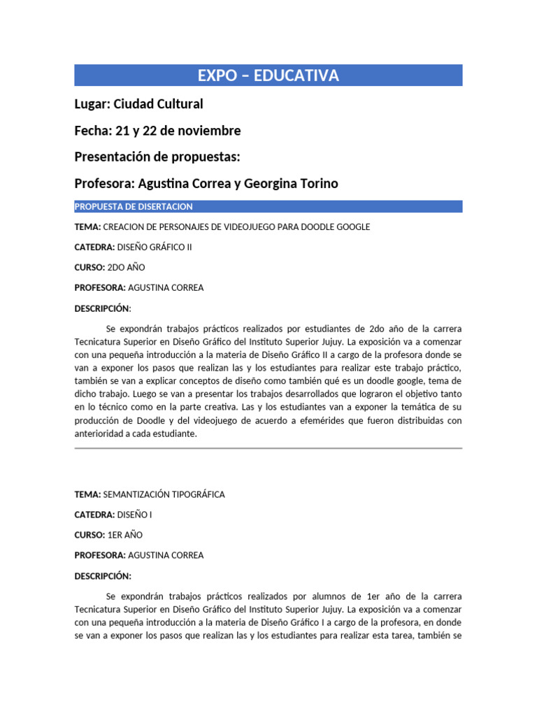 Tecnicatura Superior en Diseño Gráfico del Instituto Superior Jujuy. La exposición va a comenzar