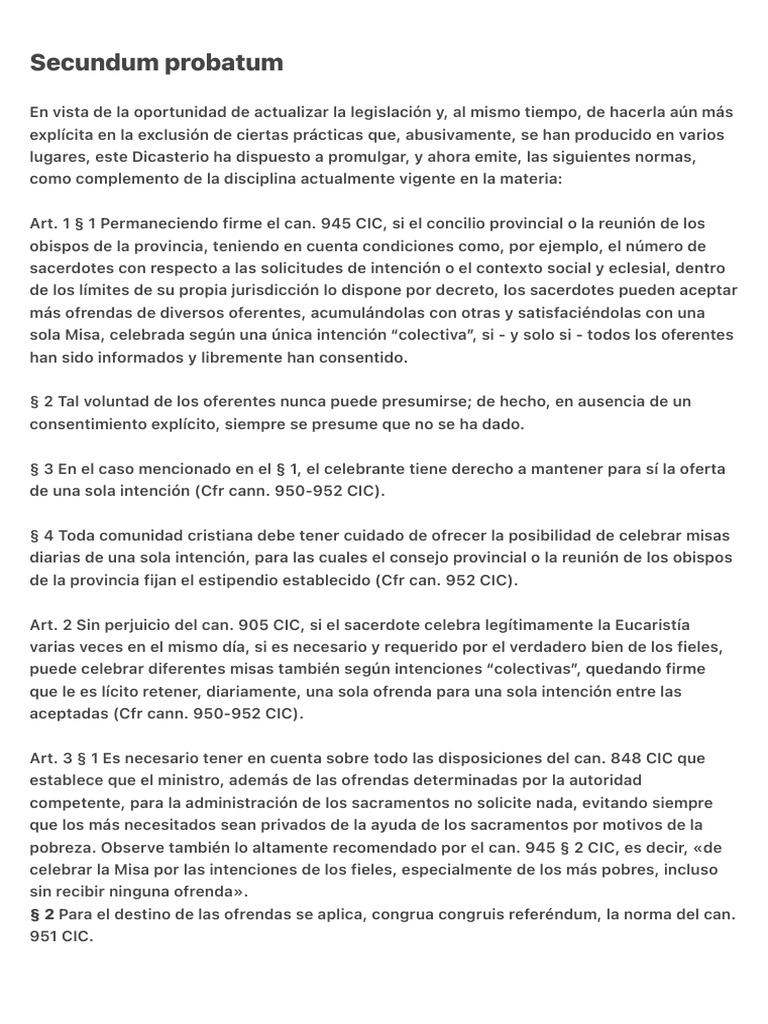 sacerdotes con respecto a las solicitudes de intención o el contexto social y eclesial, dentro
