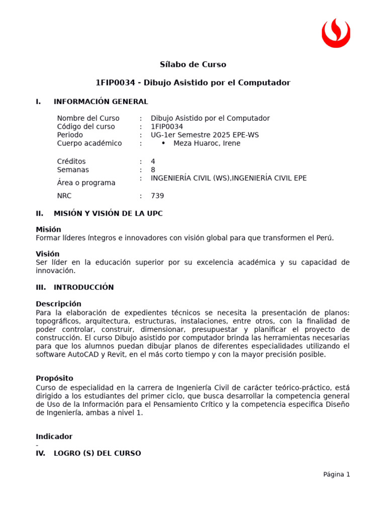 Nombre del Curso : Dibujo Asistido por el Computador