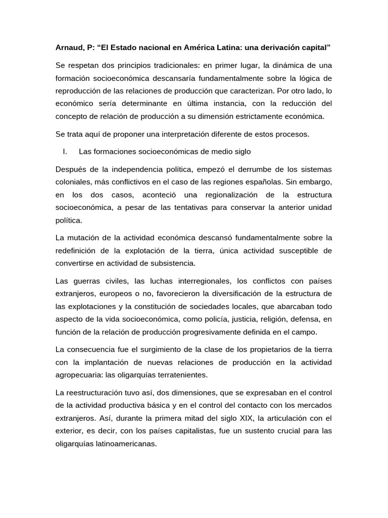 Arnaud, P: “El Estado nacional en América Latina: una derivación capital”