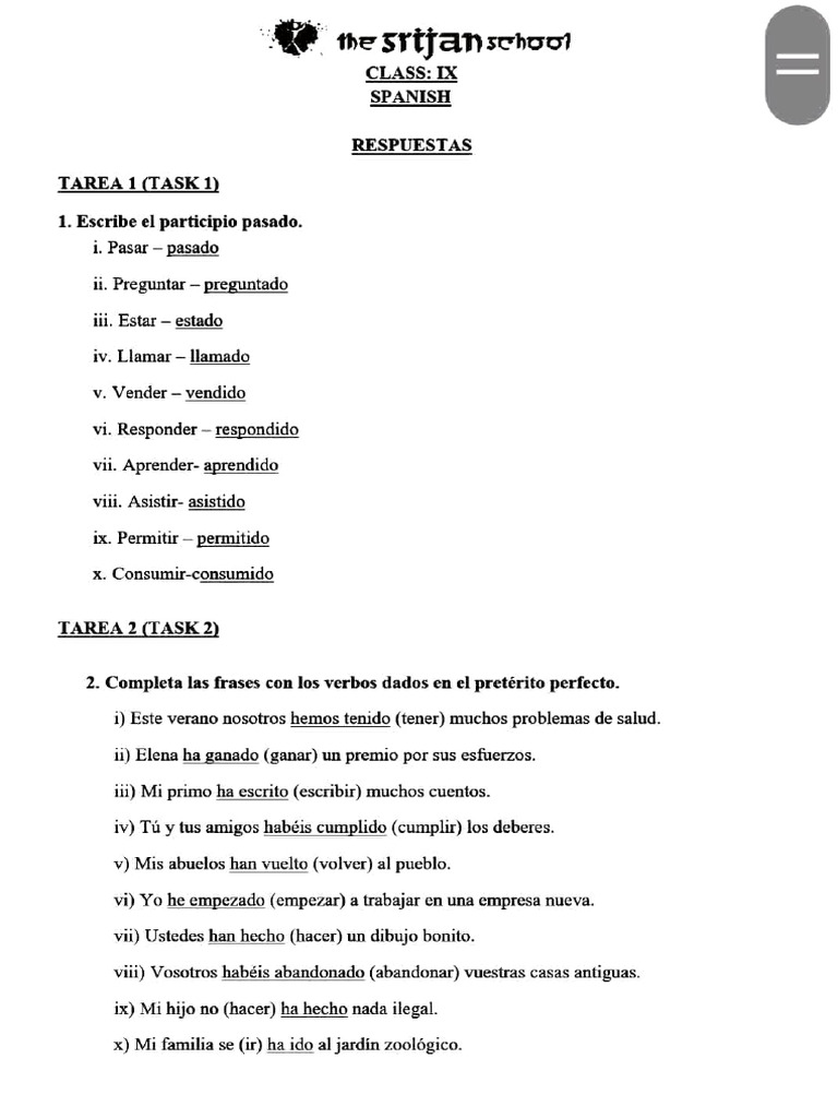 2. Completa las frases con los verbos dados en el preterito perfecto.