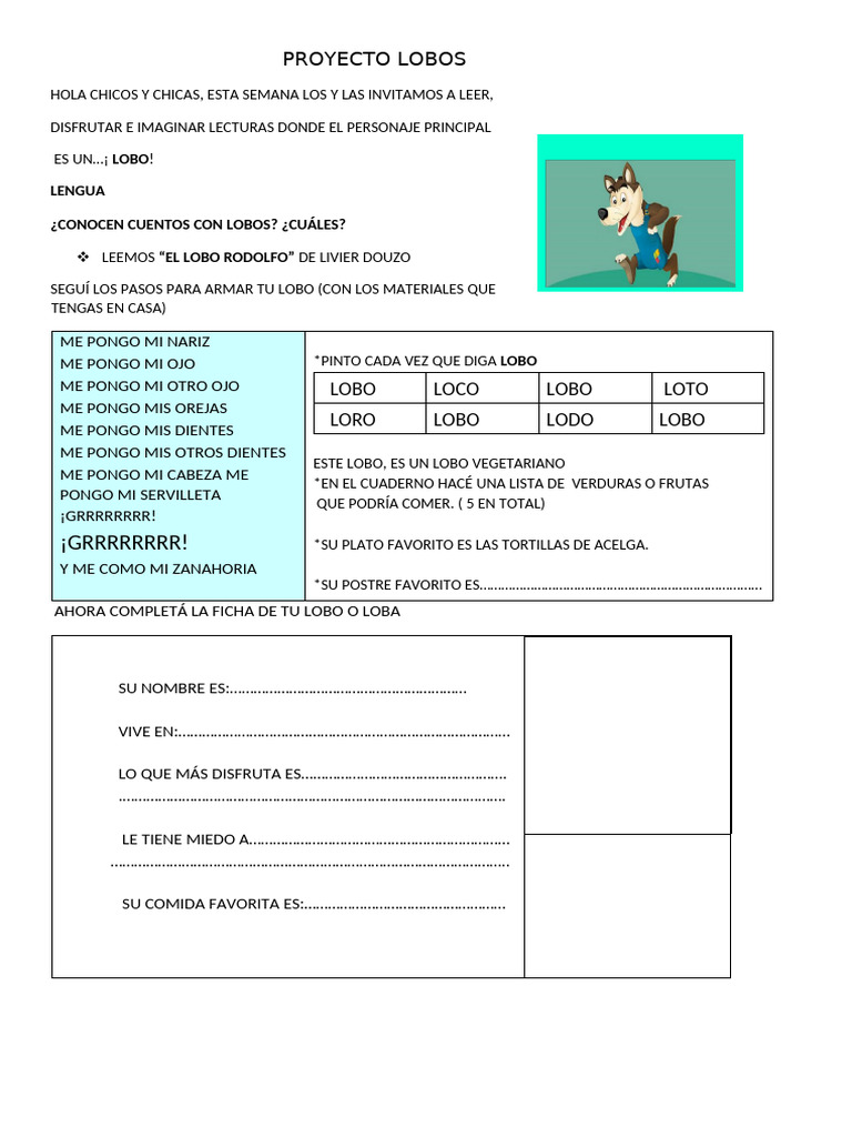 AHORA COMPLETÁ LA FICHA DE TU LOBO O LOBA