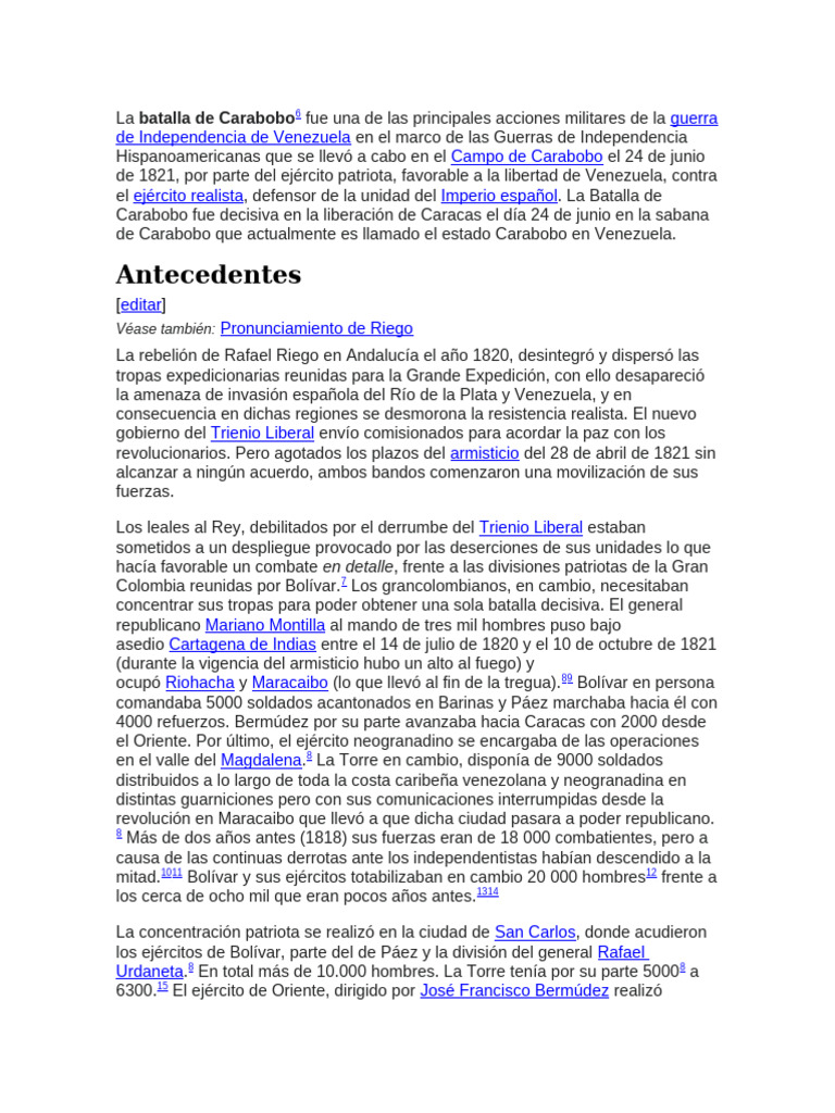 de 1821, por parte del ejército patriota, favorable a la libertad de Venezuela, contra