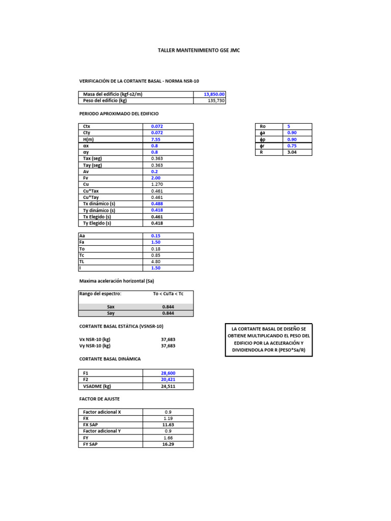 VERIFICACIÓN DE LA CORTANTE BASAL - NORMA NSR-10