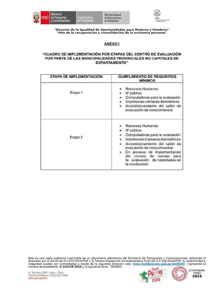 Esta es una copia auténtica imprimible de un documento electrónico del Ministerio de Transportes y Comunicaciones, aplicando lo
