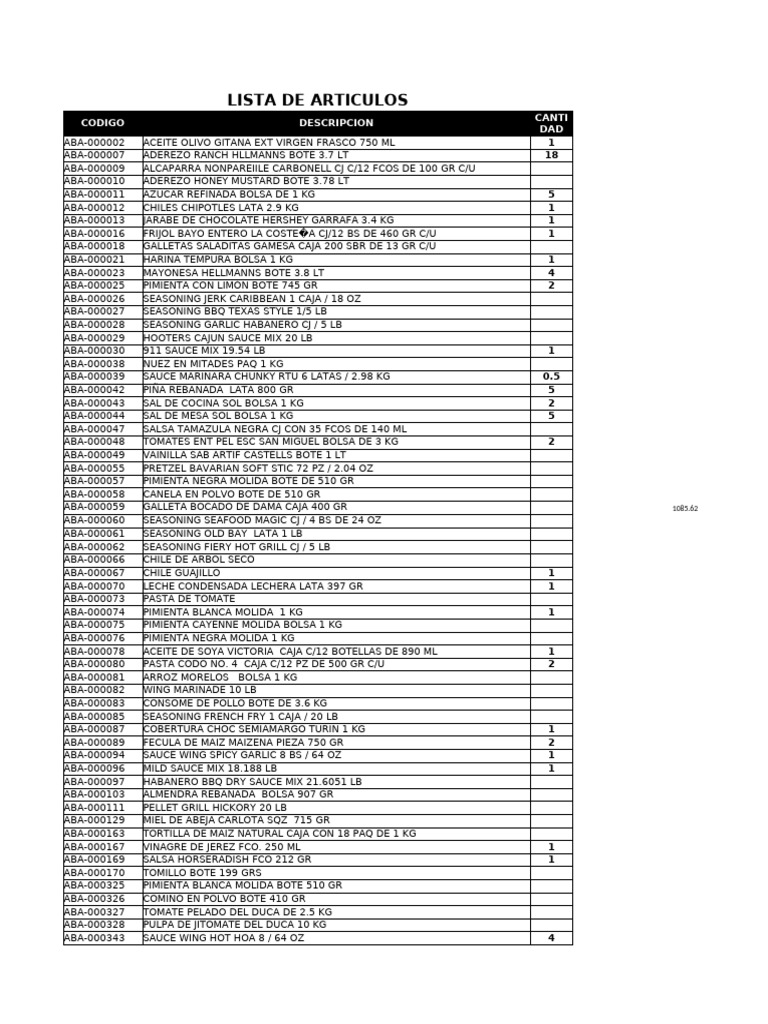 LISTA DE ARTICULOS