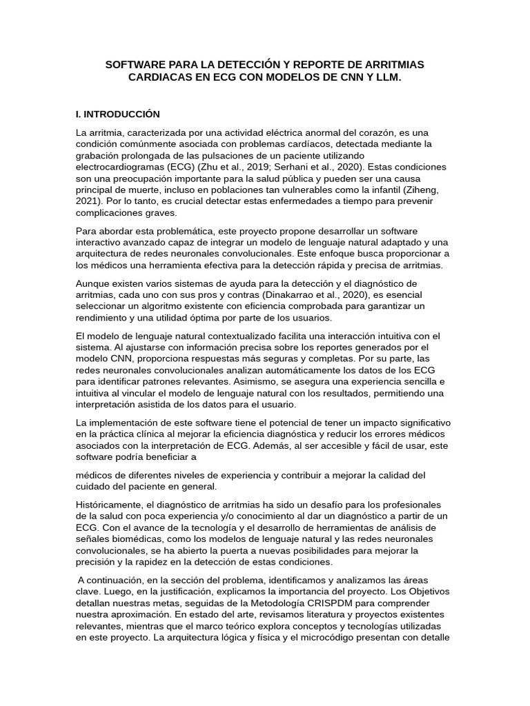 El propósito de este proyecto es abordar de manera efectiva la detección de arritmias