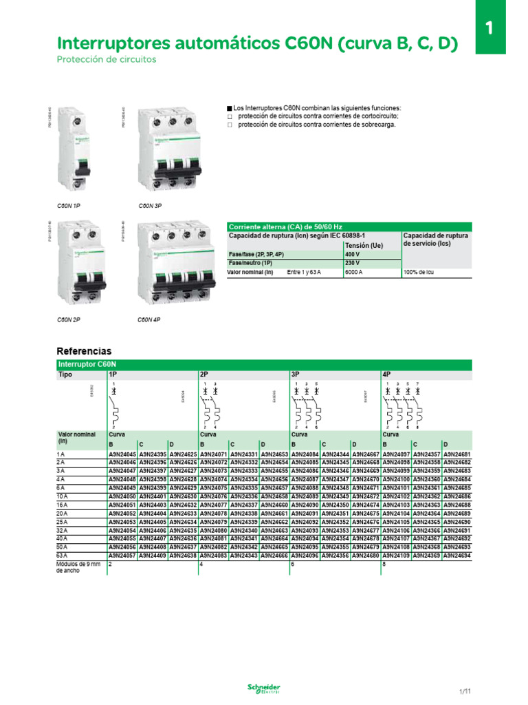 Valor nominal (In) Entre 1 y 63 A 6000 A 100% de Icu