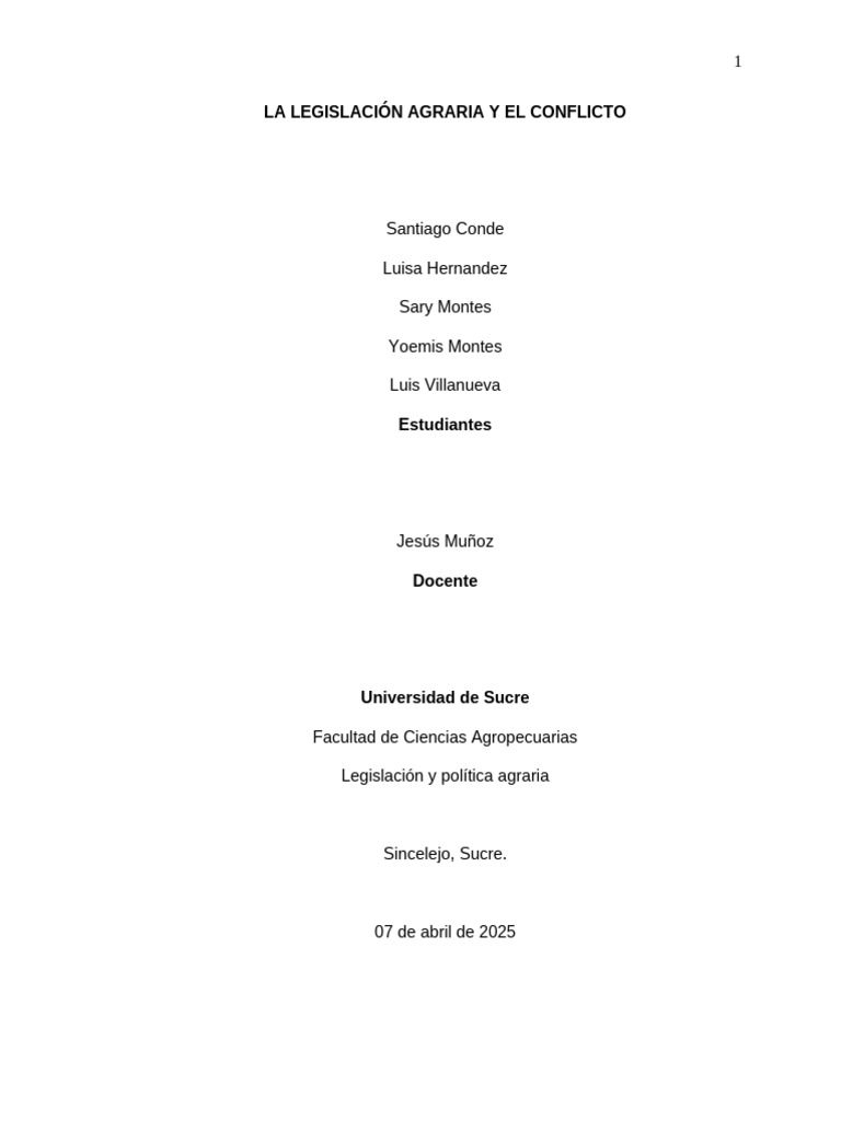 LA LEGISLACIÓN AGRARIA Y EL CONFLICTO