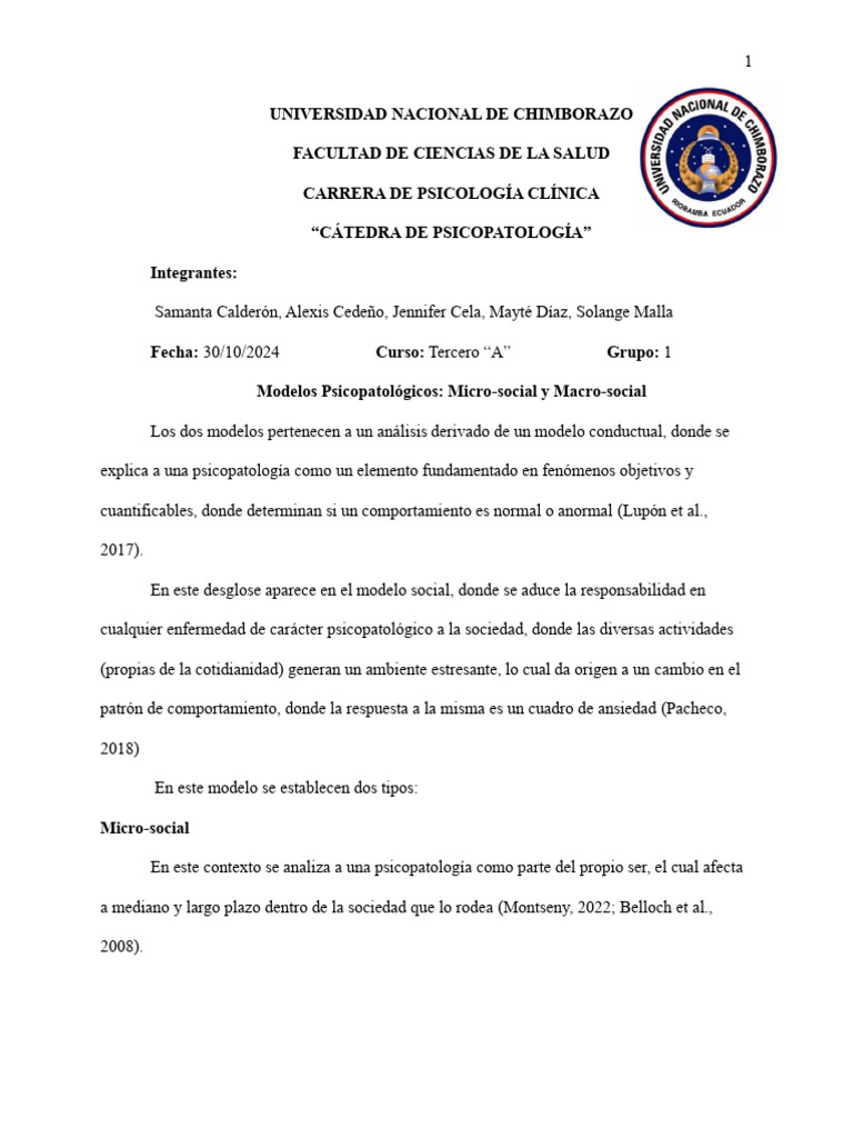 Modelos Psicopatológicos: Micro-social y Macro-social