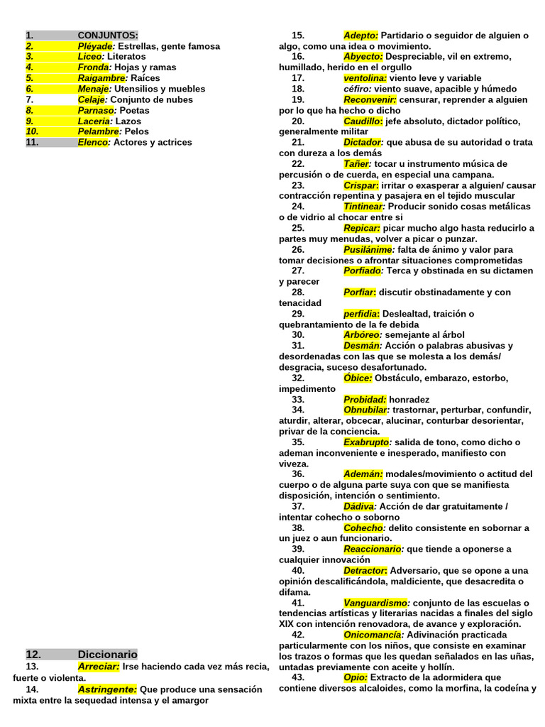 3. Liceo: Literatos 16. Abyecto: Despreciable, vil en extremo,