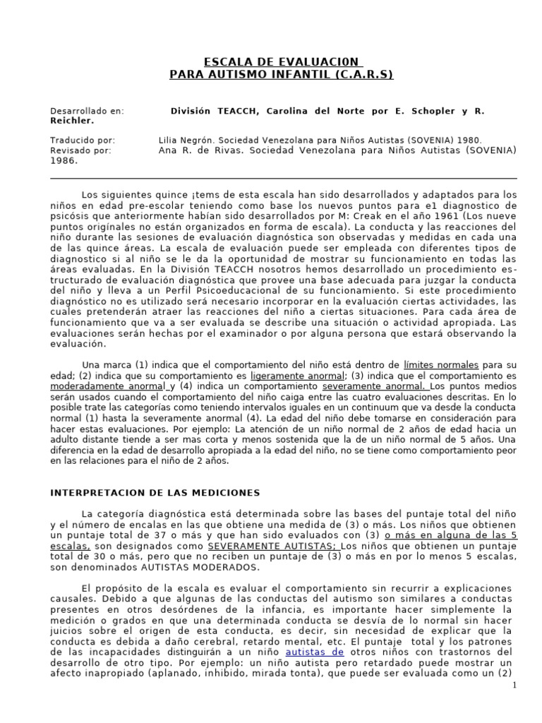 PARA AUTISMO INFANTIL (C.A.R.S)