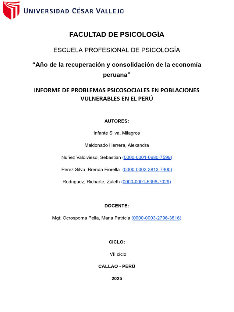 INFORME DE PROBLEMAS PSICOSOCIALES EN POBLACIONES