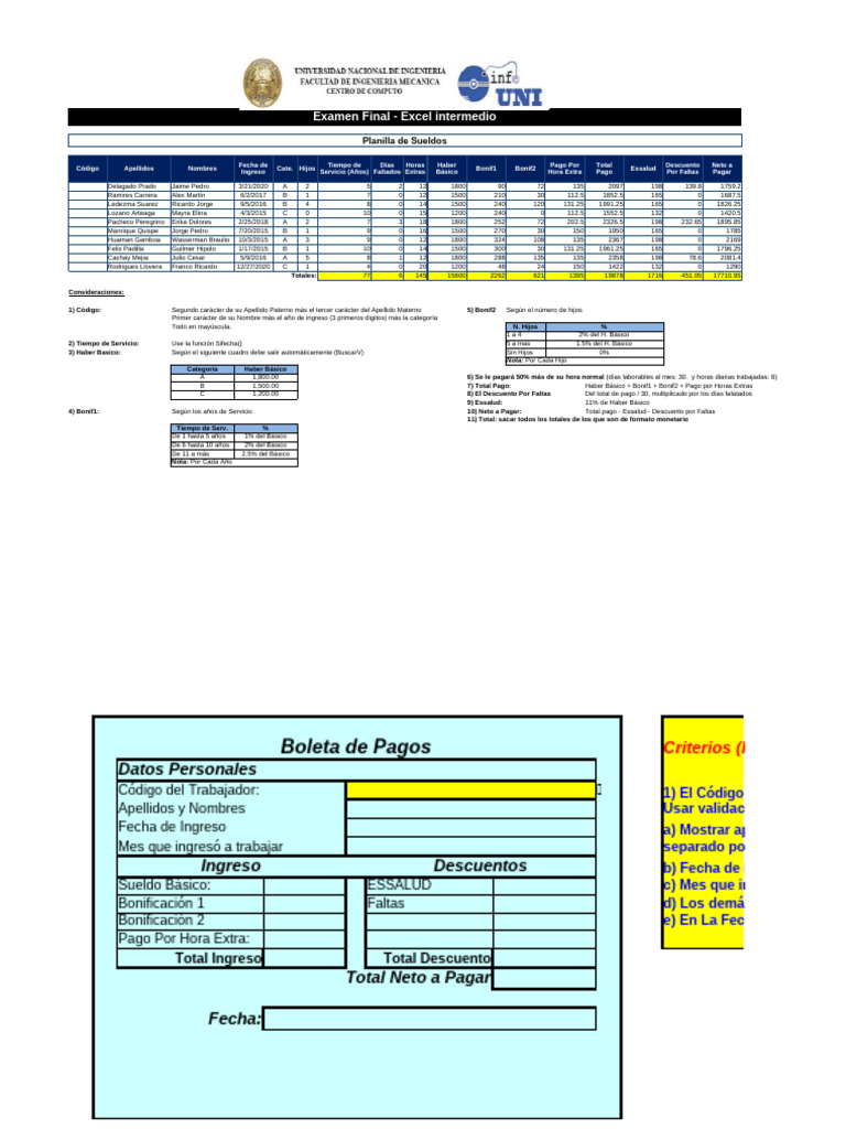 Código Apellidos Nombres Cate. Hijos Bonif1 Bonif2 Essalud