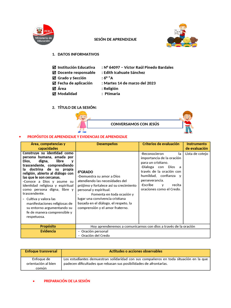 6°GRADO través de la oración con