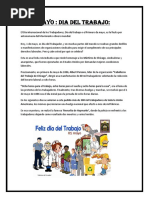 ▪ DIA MUNDIAL DEL TRABAJO: 01 DE MAYO