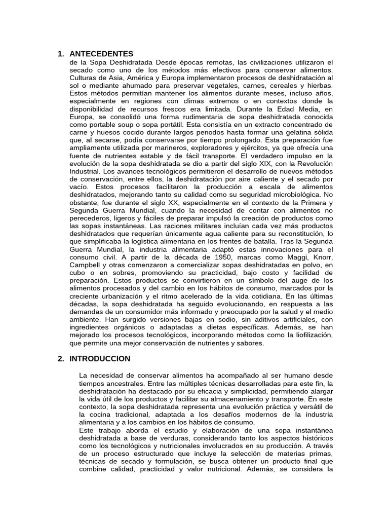 Este trabajo aborda el estudio y elaboración de una sopa instantánea
