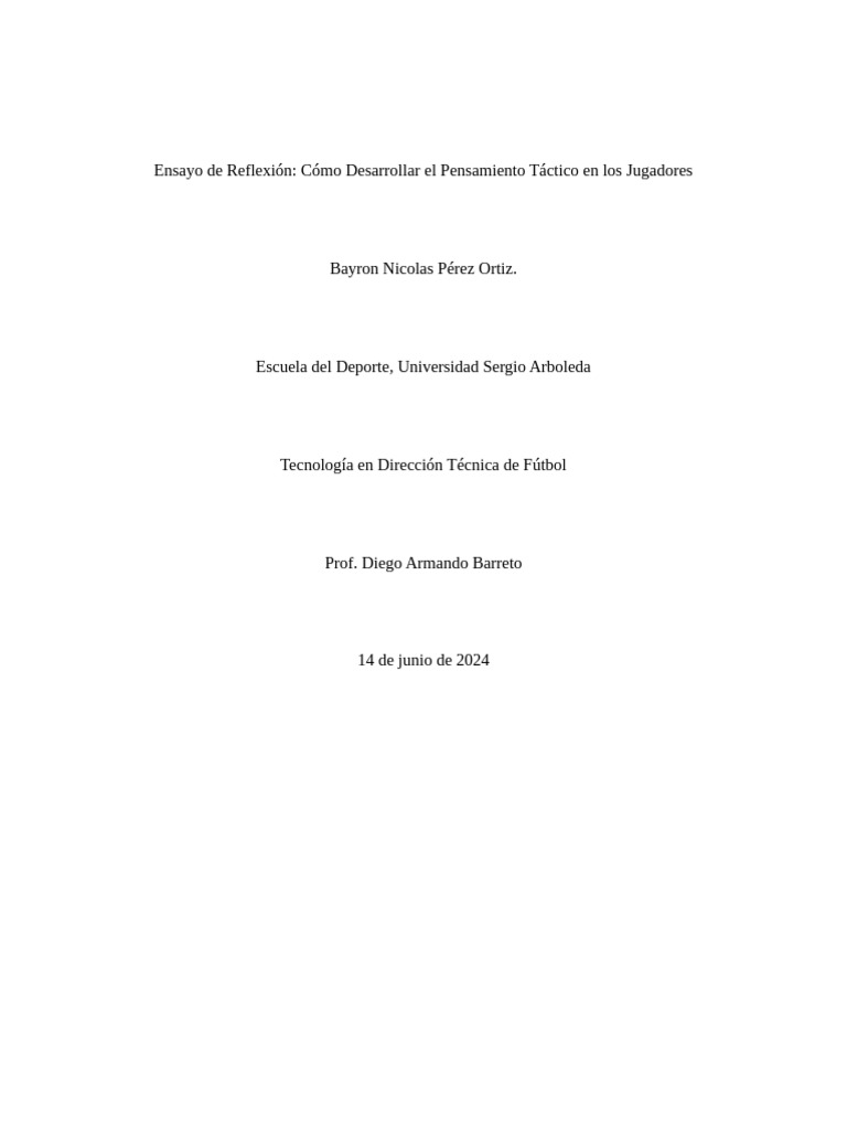 Ensayo de Reflexión: Cómo Desarrollar el Pensamiento Táctico en los Jugadores