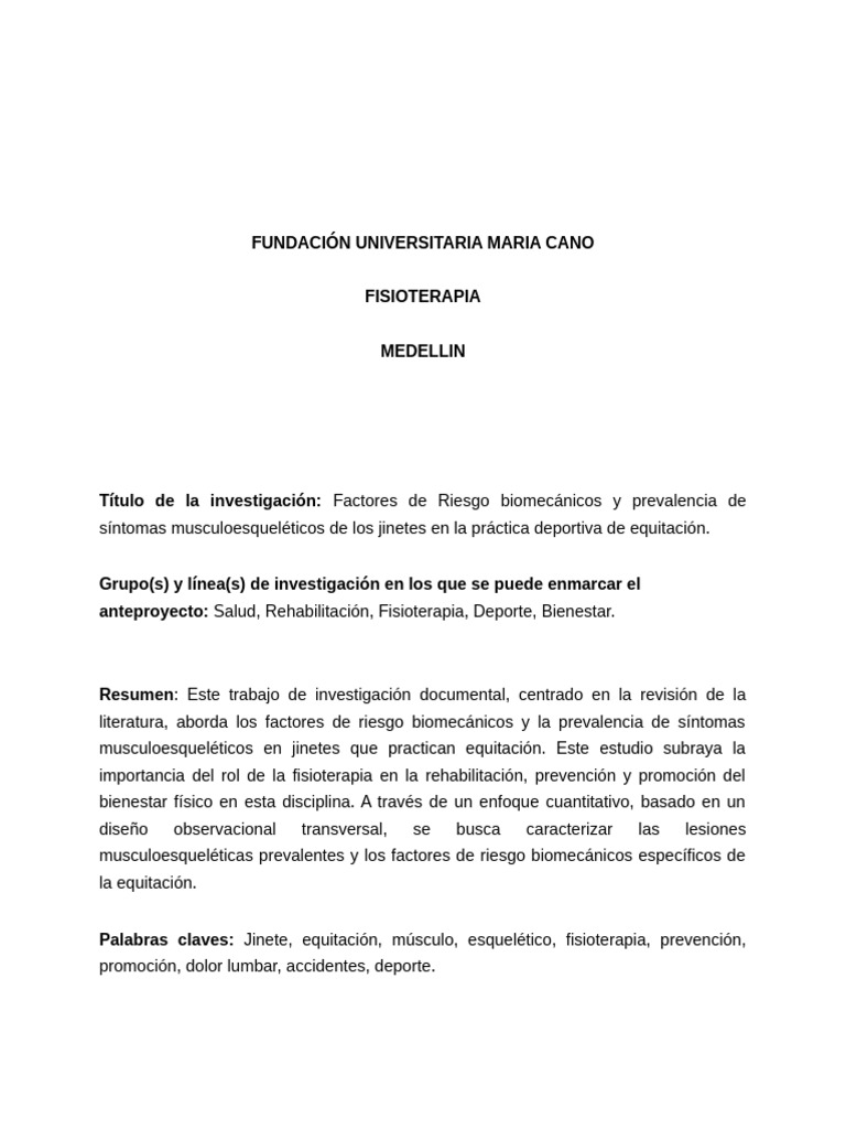 factores de riesgo biomecánicos asociados con la equitación, así como en los síntomas