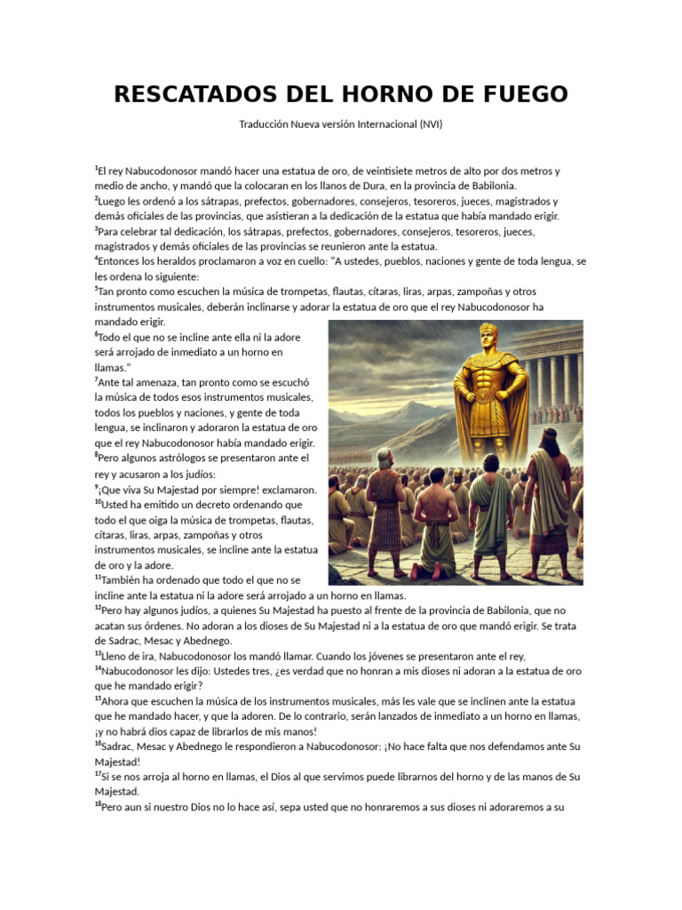 incline ante la estatua ni la adore será arrojado a un horno en llamas.