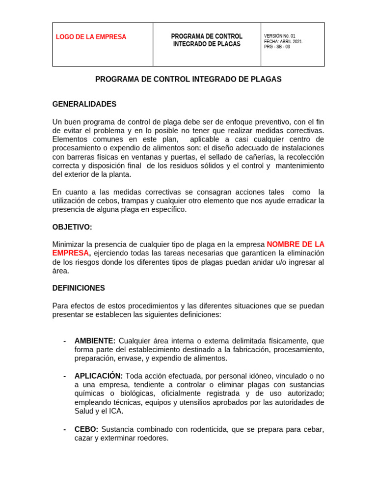 INTEGRADO DE PLAGAS PRG - SB - 03