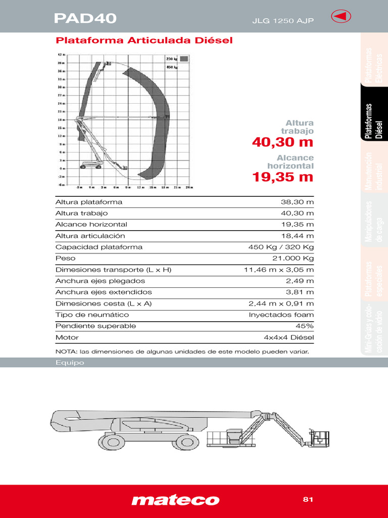 JLG está continuamente realizando investigaciones y desarrollando productos por lo que se reserva la facultad de efectuar cambios sin previo aviso.