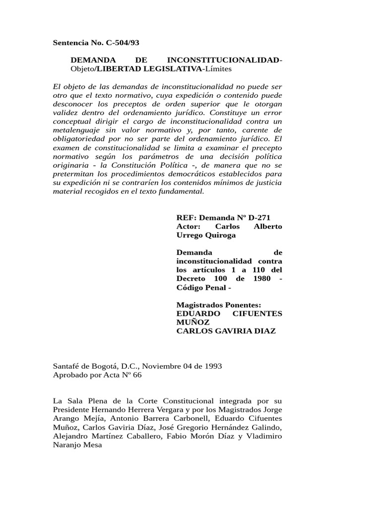 Muñoz, Carlos Gaviria Díaz, José Gregorio Hernández Galindo,