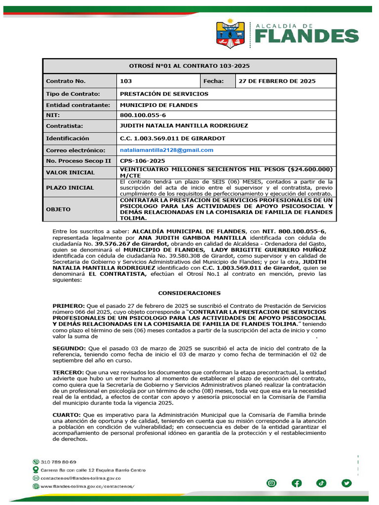 Contrato No. 103 Fecha: 27 DE FEBRERO DE 2025