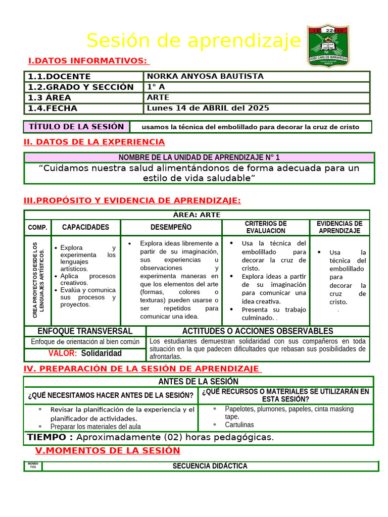 IV. PREPARACIÓN DE LA SESIÓN DE APRENDIZAJE
