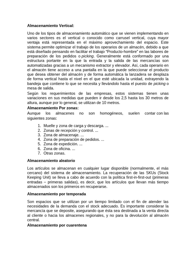 cercano) del sistema de almacenamiento. La recuperación de las SKUs (Stock